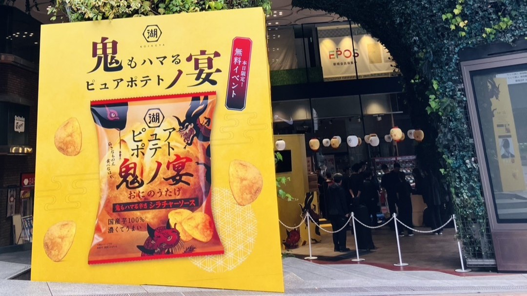 株式会社湖池屋「ピュアポテト」ブランドより、友成空の「鬼ノ宴」とコラボレーションした一品、「ピュアポテト 鬼ノ宴 鬼もハマる辛さ シラチャーソース」が発売。「鬼ノ宴」のジャケット写真や歌詞を取り入れながら、やみつきな世界観を表現した商品パッケージやCMのほか、一日限定のPOPUPイベントを渋谷にて開催しました。