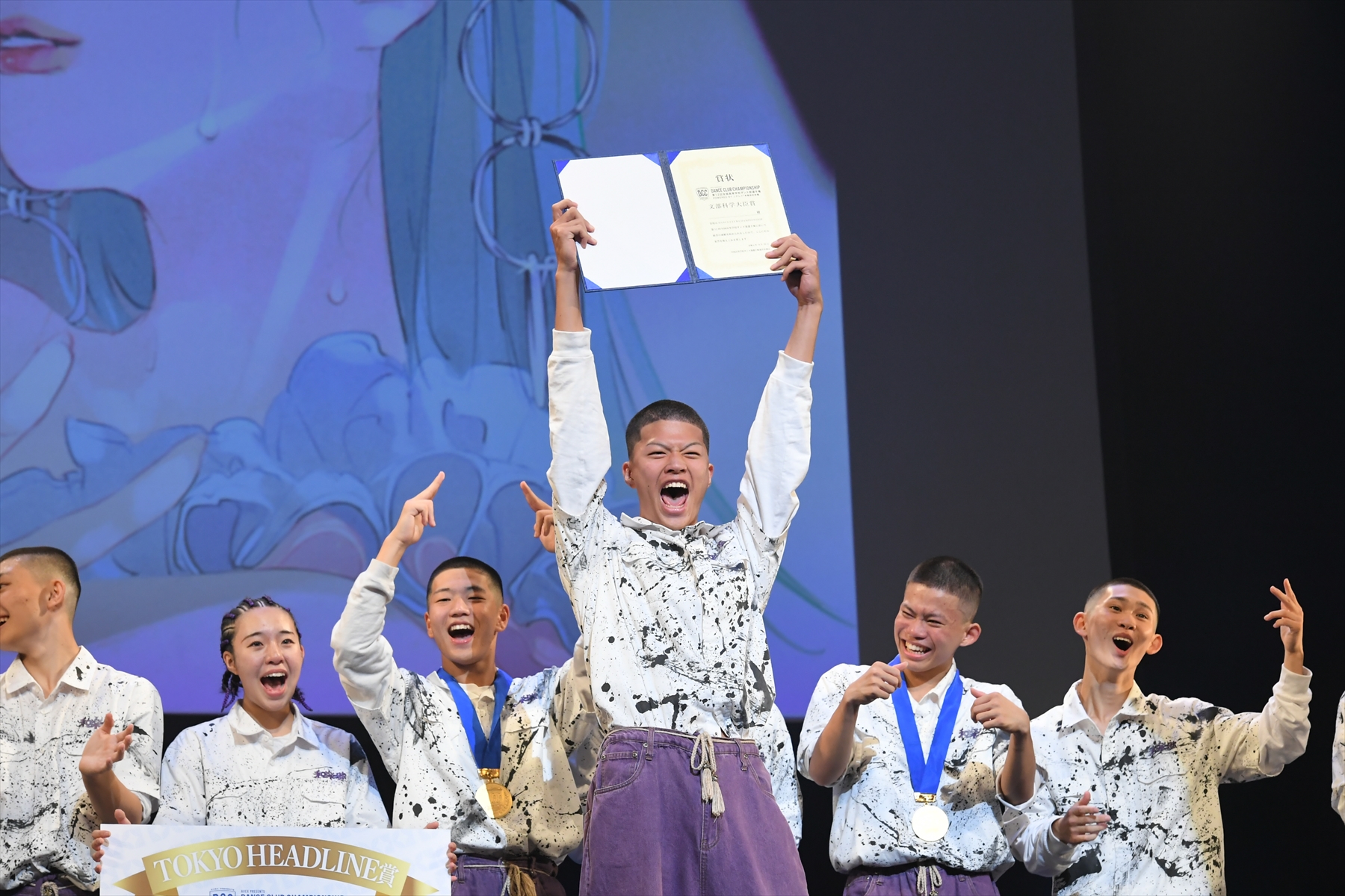 審査委員長を務めたKENZOは「昨年からDCCに審査委員長として関らせていただいているんですが、ブレイキンが優勝するのは初めてです!おめでとうございます!仲間と一緒にステージや作品に対して向き合ってきた時間は本当に心の中で財産になると思います。僕はこのステージに挑戦するということが成長でもあり、学びでもあると思います。みなさんの今日のダンスを見て、改めて元気や勇気、希望をいただきましたし、年齢は違いますけど彼らは最高のパフォーマーで、最高の主役でした!」と祝福コメントを送り、振り付けの制作もおこなった武南高等学校3年生の小代田浩喜(こよだひろき)くんは涙を流しながら「観客の皆さんを楽しませることができたんじゃないかと自分でも思っているので、本当に今日は素晴らしい大会だったと思います。本当に今日はありがとうございました!そしてお父さん、お母さん!いつも支えてくれてありがとう!これからも応援よろしくお願いします!」と喜びを露わにさせました。